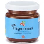 Bio Hagebuttenmarmelade „Hägenmark“ gesüßt mit Bio-Rohrohrzucker.